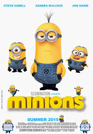 7. Minions (25/06/2015). Sinopse: Seres amarelos unicelulares e milenares, os minions têm uma missão: servir os maiores vilões. Em depressão desde a morte de seu antigo mestre, eles tentam encontrar um novo chefe. Três voluntários vão até uma convenção de vilões e lá se encantam com Scarlet Overkill (Sandra Bullock), que ambiciona ser a primeira mulher a dominar o mundo.